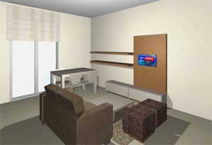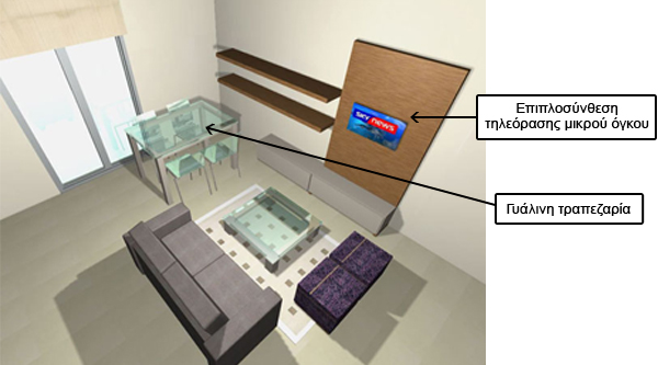 Απέναντι από τον καναπέ, μπορεί να τοποθετηθεί ένα έπιπλο για την τηλεόραση, κατάλληλων διαστάσεων.