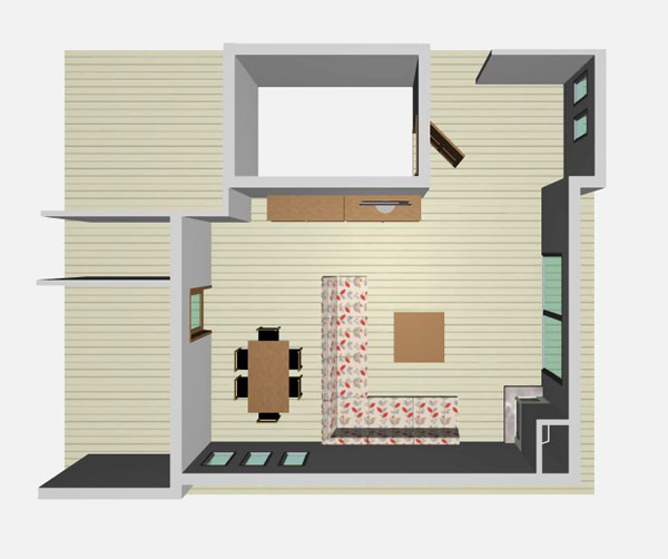 Σκέφτομαι μπροστά από το μεγάλο παράθυρο να μπει ένας τριθέσιος καναπές με δύο πολυθρόνες. Μπροστά από το τζάκι θα ήθελα έναν γωνιακό καναπέ, απέναντι από την τηλεόραση, που θα μπει δίπλα στο τζάκι, αριστερά και ίσως ένα ταμπουρέ, αλλά κλείνει ο χώρος και δεν θα υπάρχει πέρασμα για την κουζίνα... Ο χώρος της τραπεζαρίας είναι ο πιο εύκολος. Ευχαριστώ και περιμένω με ανυπομονησία την απάντησή σας!”