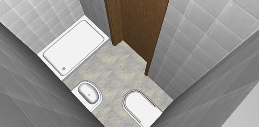 Πρόκειται για ένα πολύ μικρό μπάνιο, που για να χωρέσει οριακά όλα τα είδη υγιεινής, πρέπει να έχουν σχετικά μικρό μέγεθος. Η θέση της πόρτας πρέπει να είναι αυτή που παρουσιάζουμε στην πρόταση μας. Αν εννοείτε την πόρτα στη μικρή πλευρά δεν είναι δυνατόν να χωροθετηθούν όλα τα είδη υγιεινής, οπότε δημιουργείται ένα WC.