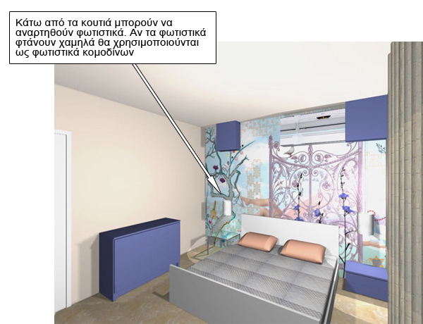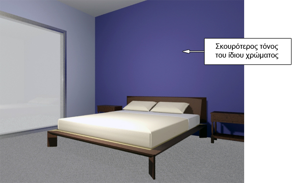 Μπορείτε να επιλέξετε ένα χρώμα της αρεσκείας σας για τους τοίχους του δωματίου (για παράδειγμα το γαλάζιο) και να βάψετε τον τοίχο πίσω από το κρεβάτι 2-3 τόνους σκουρότερο. Συνεπώς θα δημιουργήσετε μια αντίθεση μεταξύ σκούρου και φωτεινού χρώματος.