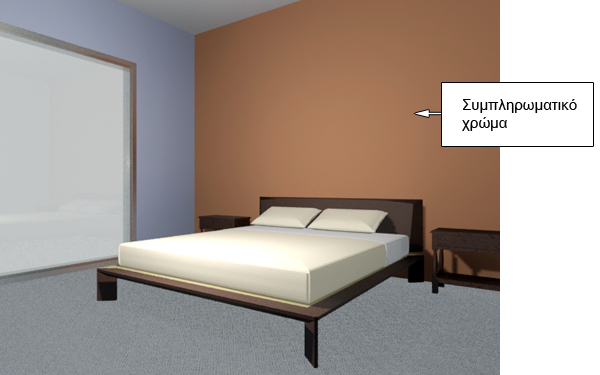 Εναλλακτικά, μπορείτε να επιλέξετε ένα χρώμα για τους τοίχους του δωματίου (για παράδειγμα το γαλάζιο) και να βάψετε τον τοίχο πίσω από το κρεβάτι με ένα συμπληρωματικό χρώμα (για παράδειγμα το κοραλλί).