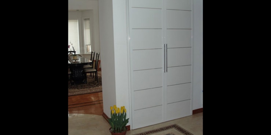 Εφόσον επιθυμείτε η ντουλάπα-γκαρνταρόμπα να είναι διακριτική στο χώρο σας, οι πόρτες της (είναι οι μόνες ορατές, αφού θα είναι εντοιχισμένη) μπορούν να έχουν χρώμα λευκό ή ίδιας ή παρόμοιας απόχρωσης με τους τοίχους.