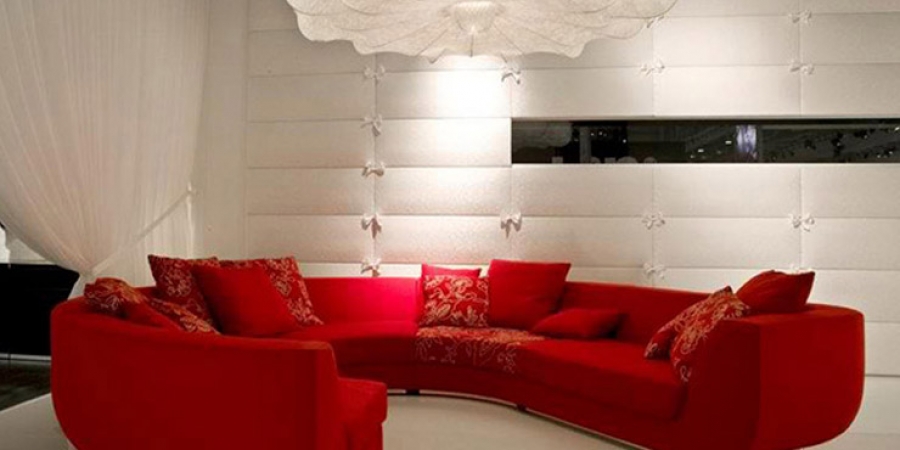 Ένας κόκκινος καναπές κάνει πάντα αισθητή την παρουσία του σε ένα χώρο, ειδικά μπροστά από λευκό τοίχο. Η παρουσία του τονίζεται ακόμη περισσότερο, όπως στην περίπτωση σας, όταν και το χαλί είναι λευκό!