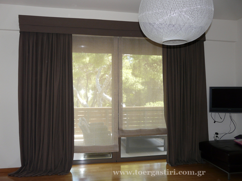 Ακόμη άλλη μια λύση που συνηθίζουμε σε σπίτια που δεν έχουν κουρτινιέρες, και δεν μας ταιριάζει η ξύλινη κορνίζα με σχέδιο, βάζουμε κορνίζα ντυμένη με ύφασμα (συνήθως που βγαίνει για να πλένεται με βέλκρο ). Όπως στις φωτό παρακάτω: