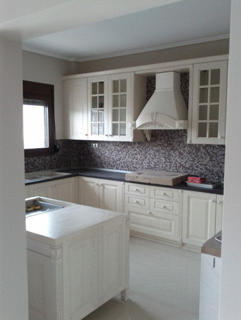 “Έχουμε την κουζίνα που σας έστειλα στη φωτογραφία. Θα θέλαμε μια βοήθεια στην επιλογή υλικού-απόχρωσης για τη νησίδα της κουζίνας στην οποία θα βάλουμε και δύο σκαμπό. Είχαμε σκεφτεί ένα γρανίτη σκούρο (που έχει μέσα τα χρώματα του πάγκου κουζίνας και της ψηφίδας) ή ξύλο σε απόχρωση πεύκου-καρυδιάς με ίδια σκαμπό. Επίσης για φωτιστικό σκεφτόμαστε ένα τρίφωτο σε λευκό-μπεζ ντεκαπέ με ανάλογο κουρτινόξυλο.” Χρήστος