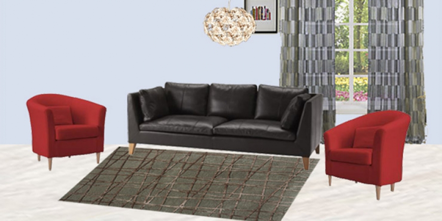 Η πρόταση μας για τις κουρτίνες και το χαλί στο σαλόνι σας διαμορφώθηκε από την περιγραφή των επίπλων σας. Δεν γνωρίζουμε την απόχρωση και το υλικό του δαπέδου σας, το χρώμα των τοίχων, καθώς και το στυλ διακόσμησης του χώρου και των επίπλων.