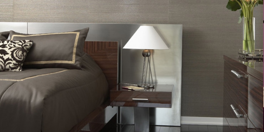 Μπορείτε να κινηθείτε σε μονοχρωματικό σχήμα του γκρι, που αναδεικνύει το ασημί χρώμα και δίνει λαμπερή, πολυτελή όψη στο χώρο. Το λευκό χρώμα επίσης αναδεικνύει το λαμπερό ασημί και το πλούσιο wenge. Πίσω από το προσκέφαλο μπορείτε να εφαρμόσετε ταπετσαρία σε τόνους λευκού και γκρίζου.