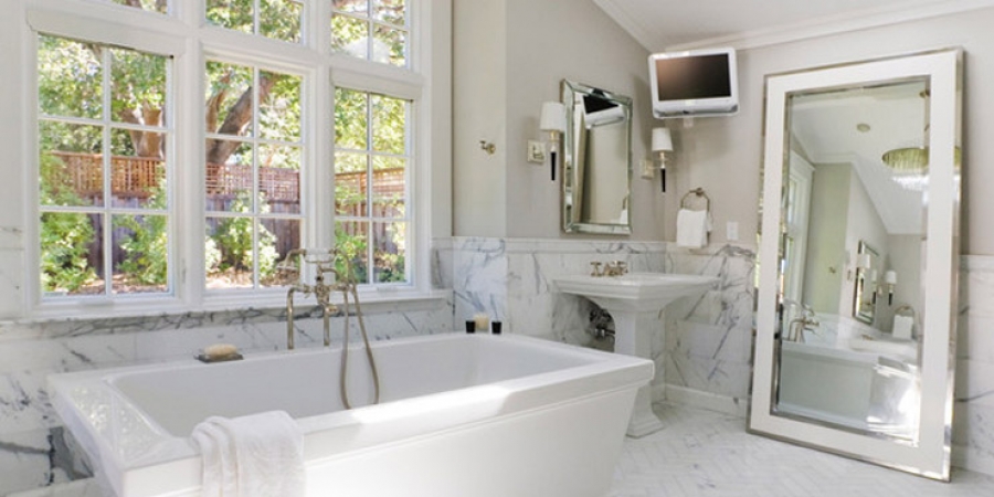 Αν το μπάνιο σας έχει μικρό μέγεθος και δεν έχει φυσικό φωτισμό (παράθυρο), είναι προτιμότερο να κινηθείτε σε τόνους του λευκού, κρεμ, ανοιχτού πράσινου.