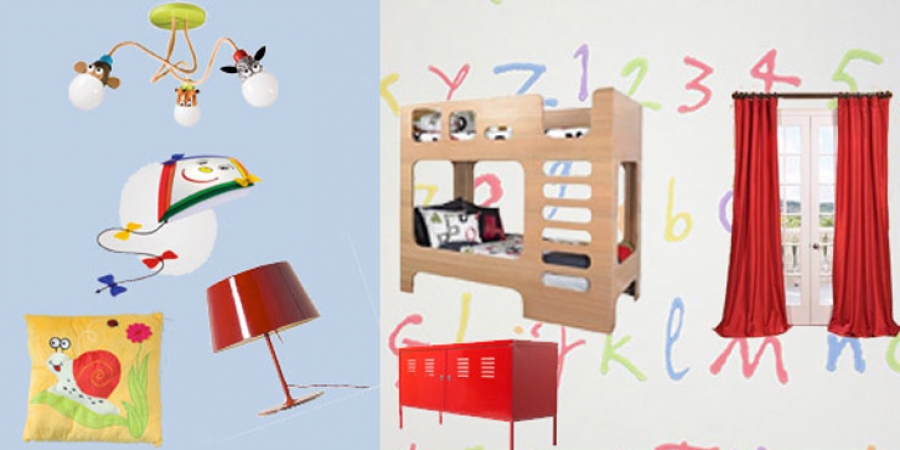 Το κόκκινο χρώμα εφόσον υπάρχει στις λεπτομέρειες των επίπλων μπορείτε να το επιλέξετε και για την κουρτίνα, ακόμη και για υπόλοιπα στοιχεία του δωματίου, όπως ενδεικτικά δείχνουμε. Συγχρόνως το κόκκινο συνδυάζεται αρμονικότατα με τους όποιους τόνους του γαλάζιου και αποτελεί ένα επιτυχημένο συνδυασμό σε αγορίστικο δωμάτιο.