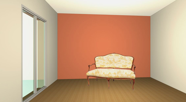 Η ζεστή γήινη τερακότα σε κεντρικό σημείο του χώρου συνδυάζεται με ένα φωτεινό, αχνορόζ έως κίτρινο για τους υπόλοιπους τοίχους, ενώ οι πόρτες μπορούν να βαφούν επίσης στο ανοιχτόχρωμο γκρίζο.