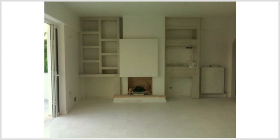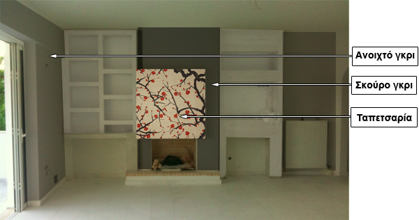 "Σε λίγο καιρό μπαίνω στο καινούριο μου σπίτι. Απλά έχω κολλήσει και δεν ξέρω τι να βάψω το σαλόνι μου. Σας στέλνω 2 φώτο. Δίπλα στο τζάκι υπάρχει μια κατασκευή από γυψοσανίδα που στο κάτω μέρος και των 2 πλευρών θα προστεθεί ξύλινο ντουλάπι το οποίο θα βαφτεί σε κάποιο χρώμα. Από την απέναντι πλευρά ένας τοίχος επίσης από γυψοσανίδα χωρίζει την κουζίνα από το σαλόνι στην οποία έχω αφήσει ένα παράθυρο και το οποίο θα ντυθεί με κάθετα και οριζόντια ράφια που θα σχηματίζουν τετράγωνα κουτιά και θα είναι στο χρώμα των ντουλαπιών της κουζίνας (βανίλια-με κάτι άλλο, ό,τι δηλαδή κάνω τον πάγκο που ούτε και αυτό το έχω αποφασίσει ακόμα).