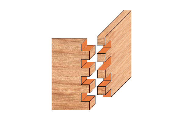 Σύνδεσμος πολλαπλών μόρσων κατά πλάτος των πλευρών του κιβωτίου με κατασκευή μόρσων και εγκοπών ορθογωνίου σχήματος τα οποία λέγονται δόντια.