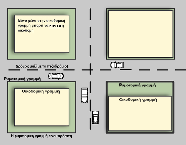 - Η ρυμοτομική γραμμή καθορίζει τον ιδιωτικό χώρο.