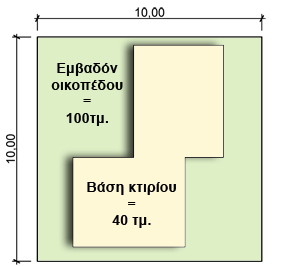 Παράδειγμα 1: Αν έχουμε ένα οικόπεδο 100τ.μ και αν το ποσοστό κάλυψης είναι 40%, τότε το κτίριο μπορεί να καταλαμβάνει στο έδαφος επιφάνεια 40 τ.μ. Φυσικά σε ύψος μπορεί να έχει περισσότερους ορόφους.