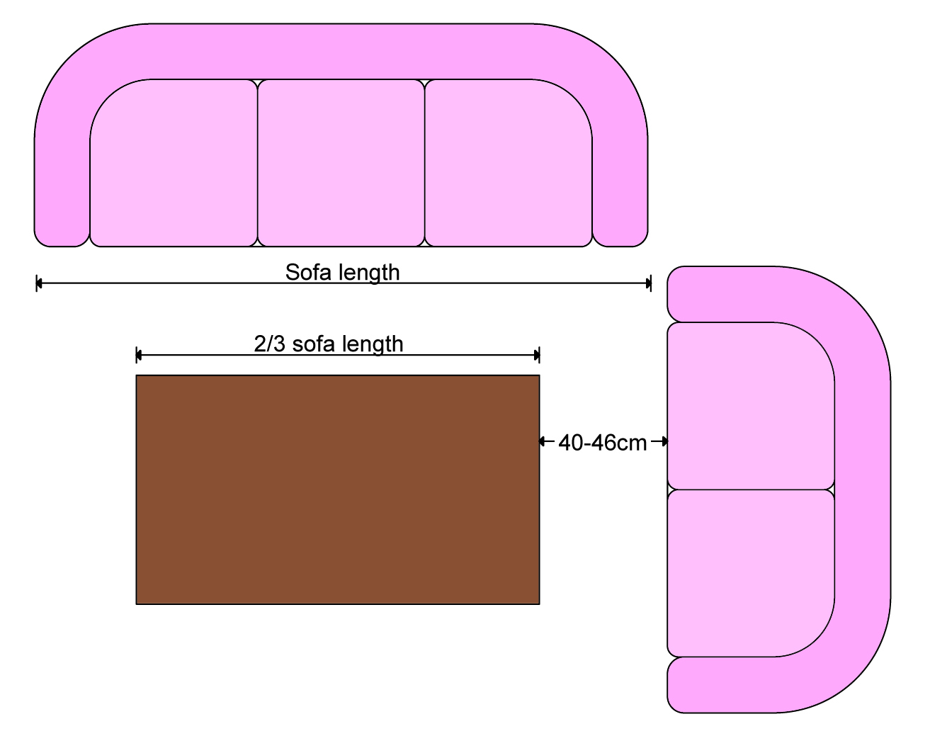 Το μέγεθος των καναπέδων: Αν διαθέτετε ένα μακρύ καναπέ, τότε λογικό είναι να επιλέξετε ένα τραπέζι μεγάλου μήκους Ωστόσο, πόσο μακρύ πρέπει να είναι το τραπέζι; Ο πιο απλός κανόνας λέει ότι τα τραπέζι του σαλονιού πρέπει να είναι περίπου στα 2/3 του μήκους του καναπέ (και λίγο μικρότερο).