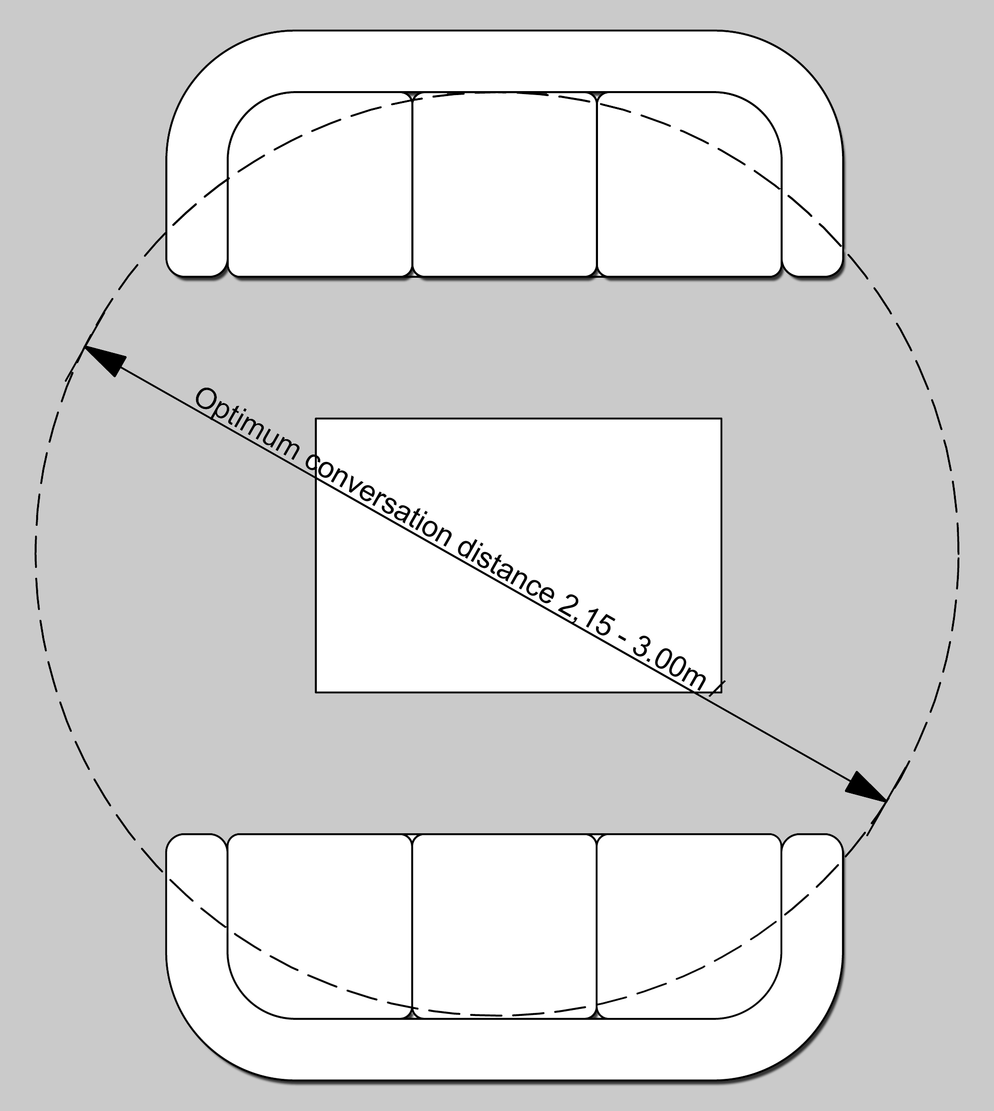 Η βέλτιστη απόσταση μεταξύ δύο καθισμένων, προκειμένου να μπορούν να συζητούν με άνεση είναι μεταξύ 2,15-3,00 μέτρα. Ως εκ τούτου, πριν επιλέξετε το τραπέζι του σαλονιού θα πρέπει να σκεφτείτε τη διάταξη των καθισμάτων, το μέγεθός τους, την απόσταση μεταξύ τραπεζιού και καναπέδων, ετσι ώστε οι καθισμένοι να βρίσκονται εντός της συγκεκριμένης απόστασης. Σε μερικές περιπτώσεις, ένα μεγάλο τραπέζι σαλονιού εμποδίζει την επικοινωνία μεταξύ των καθισμένων.