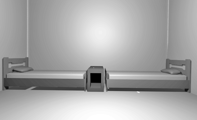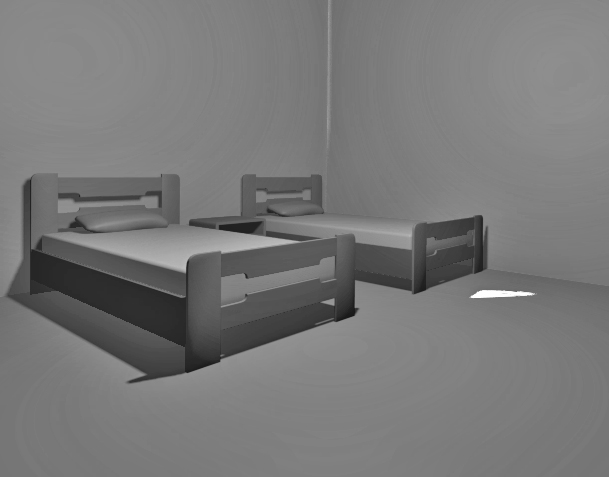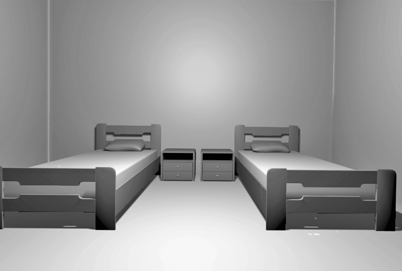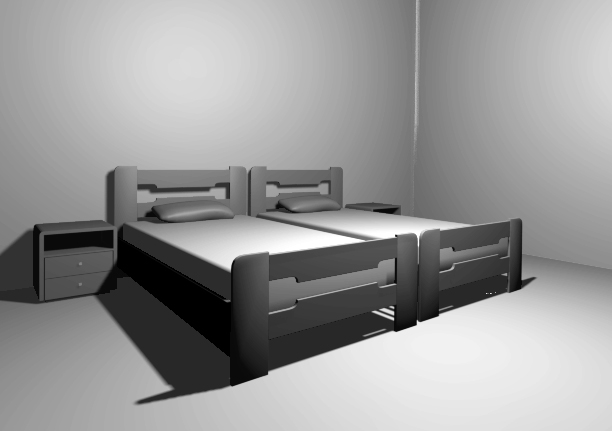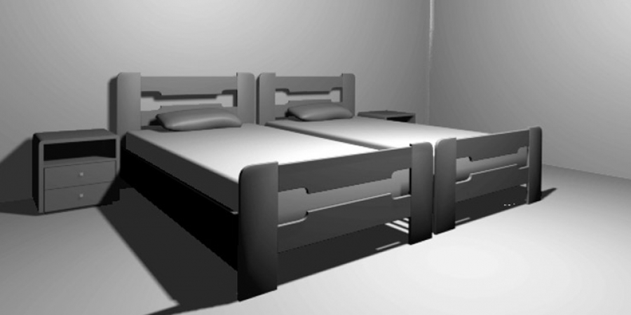 Τα κρεβάτια τοποθετήθηκαν παράλληλα μεταξύ του και ανάμεσα τοποθετήθηκε ένα κομοδίνο