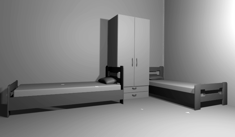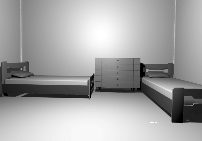 Το ένα κρεβάτι τοποθετήθηκε με το προσκέφαλο στη γωνία και το άλλο με τα πόδια. Η συρταριέρα που τοποθετήθηκε ανάμεσα μπορεί να χρησιμοποιηθεί και σαν κομοδίνο.