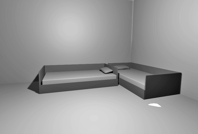 Τα κρεβάτια είναι ενωμένα μεταξύ τους. Για τη συγκεκριμένη διάταξη θα πρέπει το σχέδιο του κρεβατιού να είναι κατάλληλο, όπως για παράδειγμα να έχει χαμηλό προσκέφαλο.