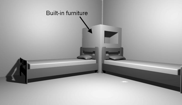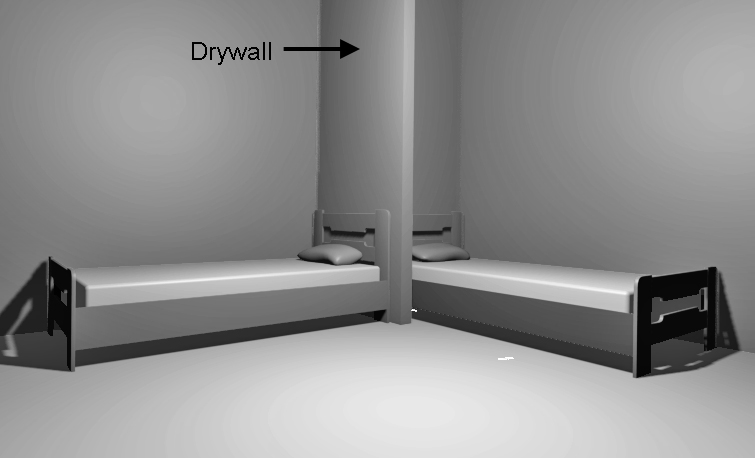 Για περισσότερη ιδιωτικότητα, μπορεί να κατασκευαστεί ανάμεσα στα κρεβάτια διαχωριστικό από γυψοσανίδα