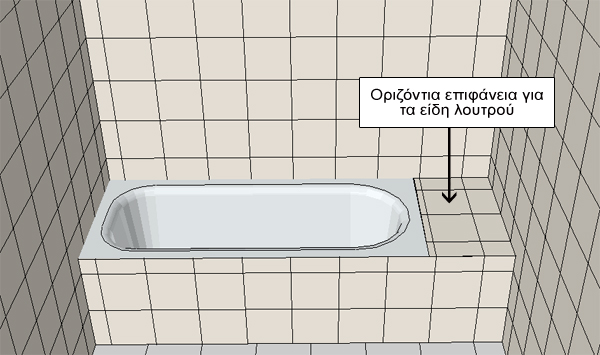 Αρκετές φορές στη μία πλευρά της μπανιέρας κατασκευάζεται μια οριζόντια επιφάνεια για την τοποθέτηση των ειδών λουτρού (σαπούνια, σφουγγάρια, κλπ).