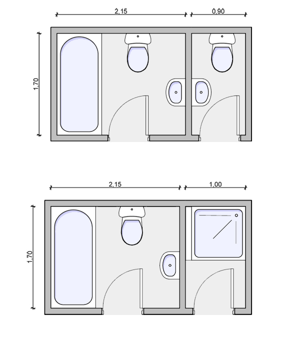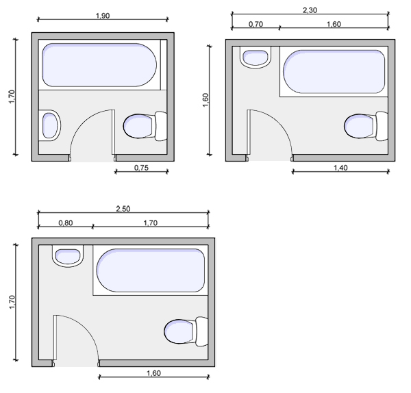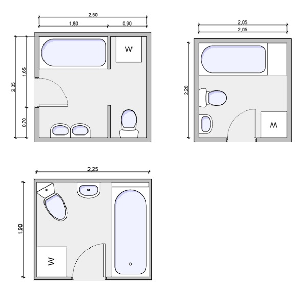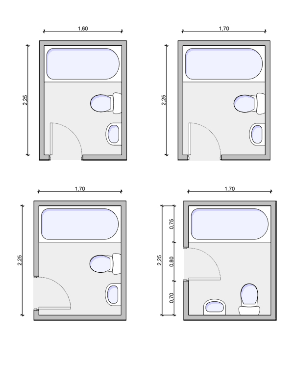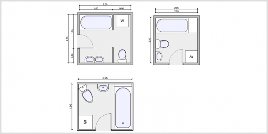 Ακολουθεί οδηγός διαστασιολογημένων κατόψεων για λουτρά και WC.