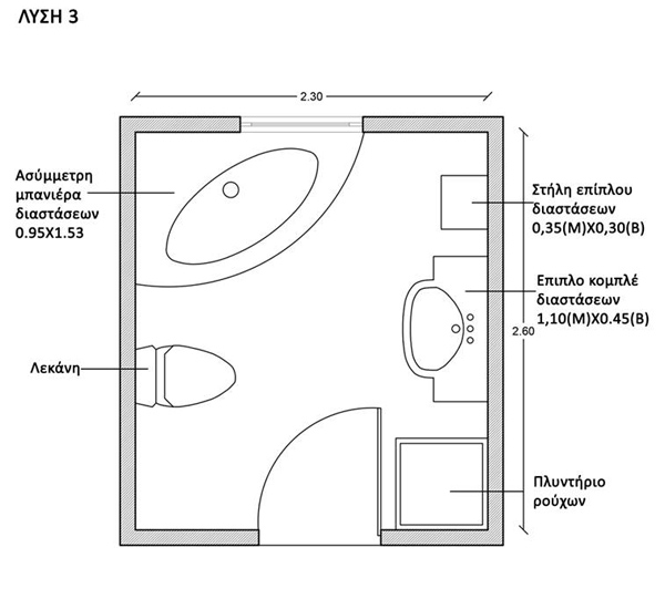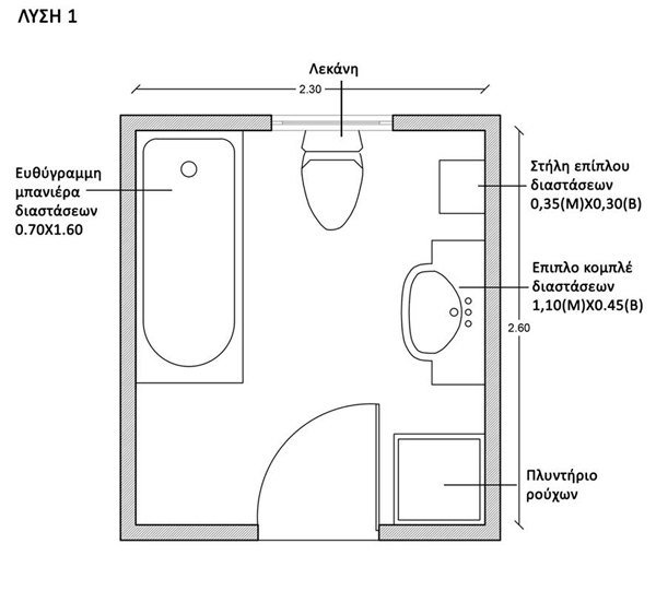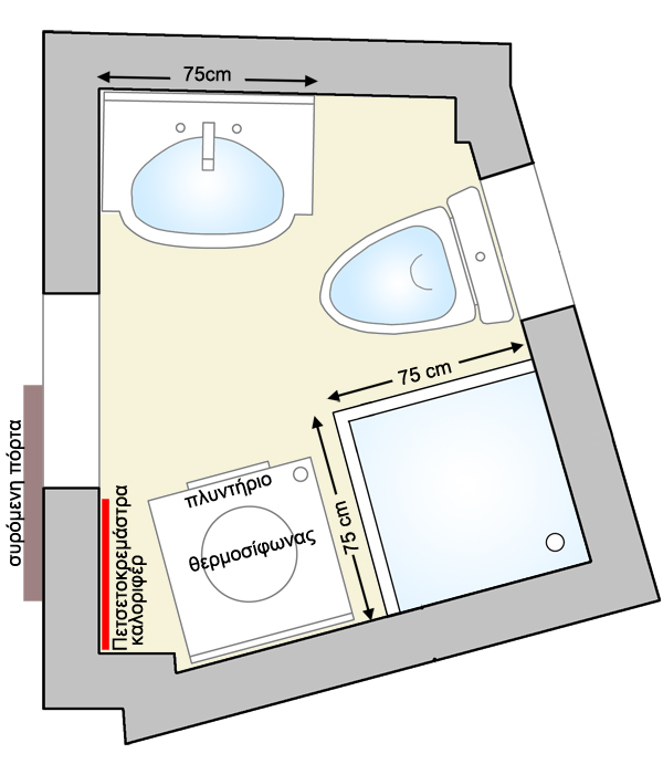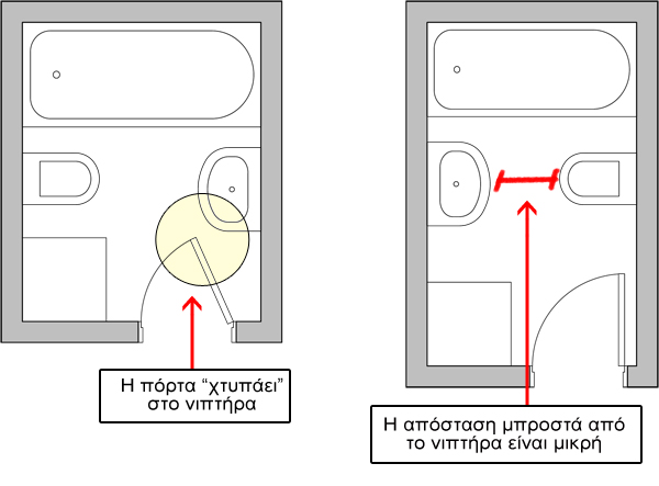 - Στο οριζόντιο επίπεδο, τα μπάνια καλό είναι να χωροθετούνται το ένα δίπλα στο άλλο, δηλαδή να μοιράζονται έναν κοινό τοίχο. Αυτό είναι θεμιτό τόσο για μπάνια του ίδιου διαμερίσματος όσο και για μπάνια διαφορετικών διαμερισμάτων. Αυτό φυσικά δεν ισχύει για μπάνια που ανήκουν σε διαφορετικές πολυκατοικίες (σε διαφορετικά κτίρια δηλαδή) καθώς η κάθε πολυκατοικία έχει τις δικές της εγκαταστάσεις.