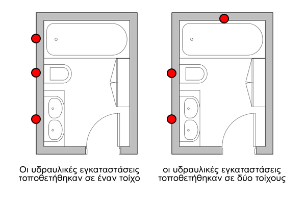 Αν τηρηθούν οι δύο βασικοί αυτοί κανόνες, τότε οι εγκαταστάσεις, δηλαδή οι σωληνώσεις ύδρευσης και αποχέτευσης καθώς και οι εγκαταστάσεις του εξαερισμού, θα έχουν μικρότερο κόστος εγκατάστασης (μήκος σωληνώσεων, ηχομόνωση, κλπ) αλλά και συντήρησης.