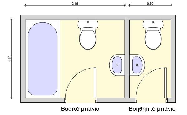 Γενικά, η καλύτερη λύση είναι να υπάρχουν δύο τουλάχιστον μπάνια σε μια κατοικία. Το ένα μπορεί να είναι μεγαλύτερο και πλήρως εξοπλισμένο (με λεκάνη, μπανιέρα, νιπτήρα) και να χρησιμοποιείται μόνο από τους ενοίκους του σπιτιού και το άλλο (το βοηθητικό) να είναι μικρότερο.