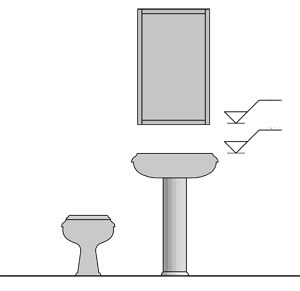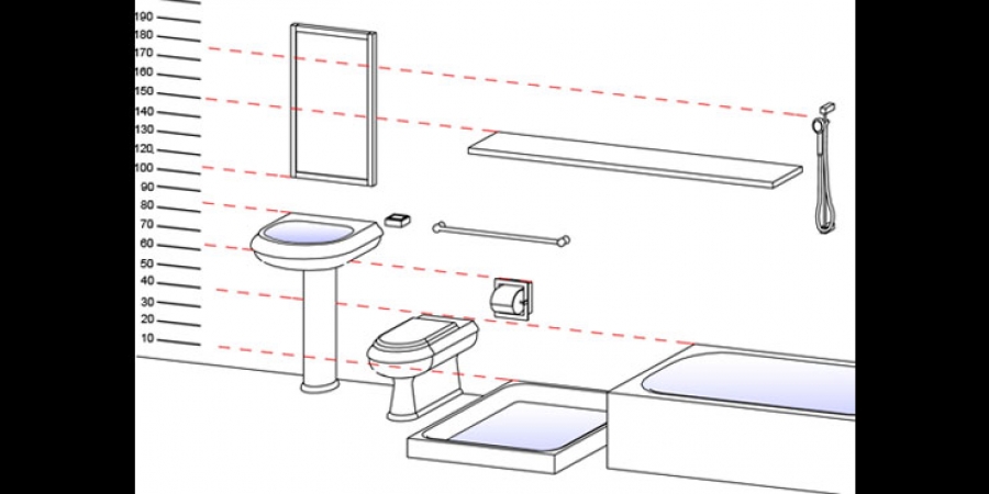 Διάγραμμα, όπου παρουσιάζονται τα τυπικά ύψη των ειδών υγιεινής και των διαφόρων εξαρτημάτων του μπάνιου.