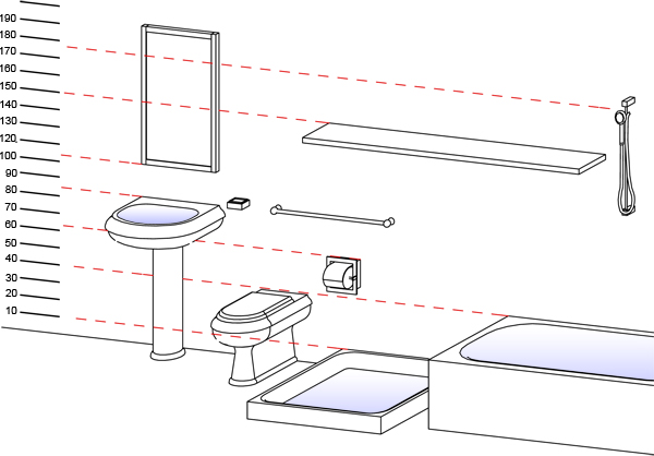 Τα ύψη των ειδών υγιεινής είναι τυποποιημένα, και συνεπώς είναι, κατά κάποιο τρόπο, τυποποιημένη και η θέση της σαπουνοθήκης, της θήκης του χαρτιού υγείας, της κρεμάστρας, κλπ.