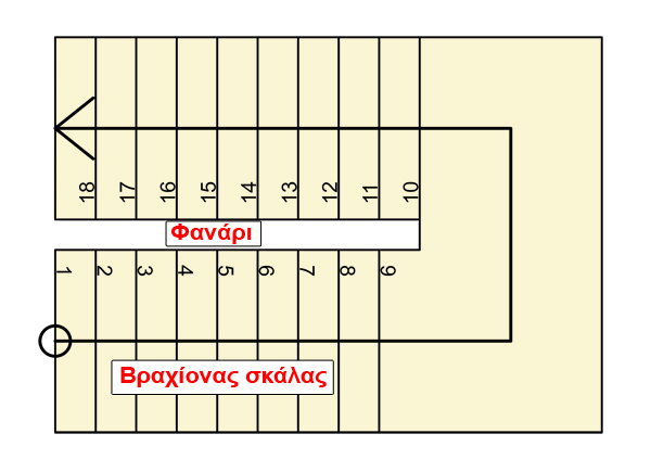 - Φανάρι: Είναι το κενό που δημιουργείται μεταξύ δύο βραχιόνων, όταν η σκάλα έχει σχήμα Π.