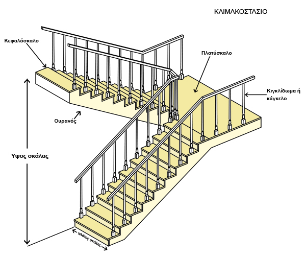 - Κλιμακοστάσιο: Είναι ο χώρος (ανοιχτός ή κλειστός) μέσα στον οποίο βρίσκεται η σκάλα.