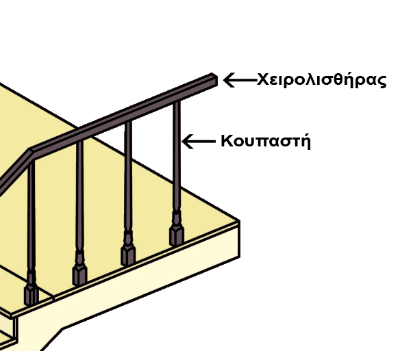 - Χειρολισθήρας: Ονομάζεται το ανώτερο στοιχείο του κιγκλιδώματος, το οποίο πιάνει ο χρήστης κατά την ανάβαση ή κατάβαση.