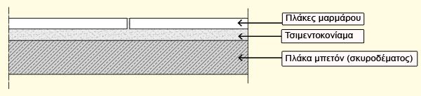 Δάπεδο από πλάκες μαρμάρου σε πλάκα σκυροδέματος