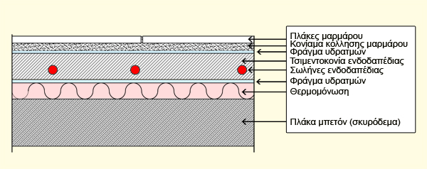 Δάπεδο από πλάκες μαρμάρου με ενδοδαπέδια θέρμανση